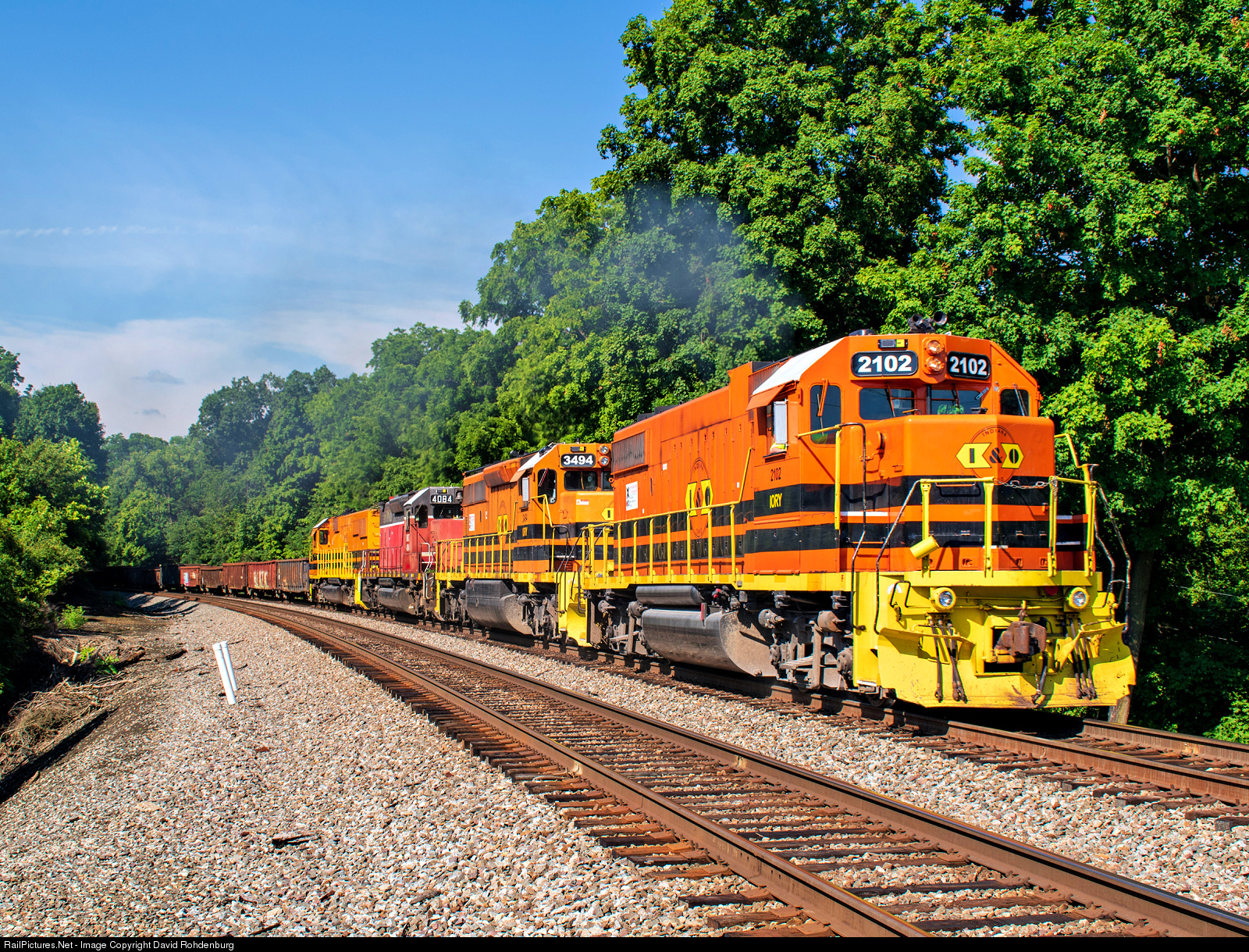 RailPictures.Net Photo: IORY 2102 Indiana & Ohio Railway EMD GP38-2 at West Chester, Ohio by David Rohdenburg