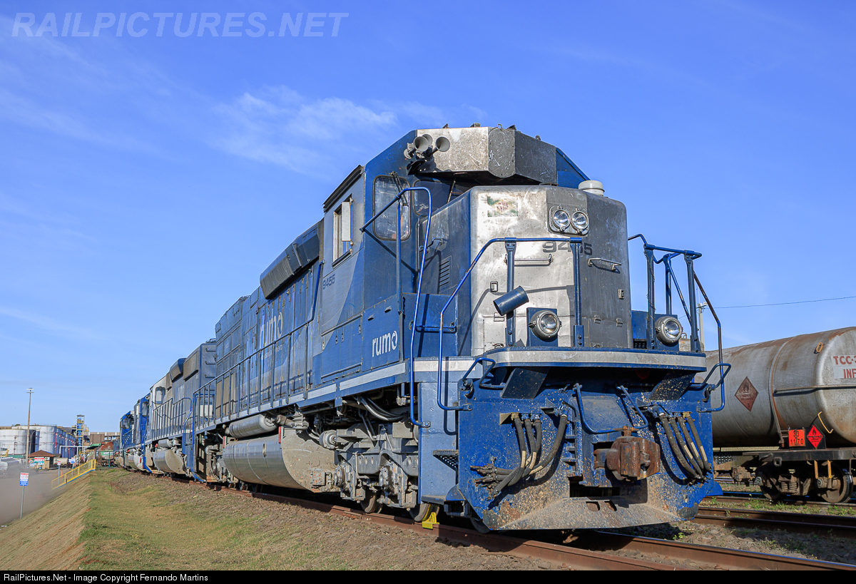 Ex-SSW SD45T-2 #9385, today it works in Brazil in narrow gauge. With the low movement of cargo, some locomotives are left in a trailer waiting for service, and that same day a mechanic came to them to run the engine and check its components due to many days stopped.