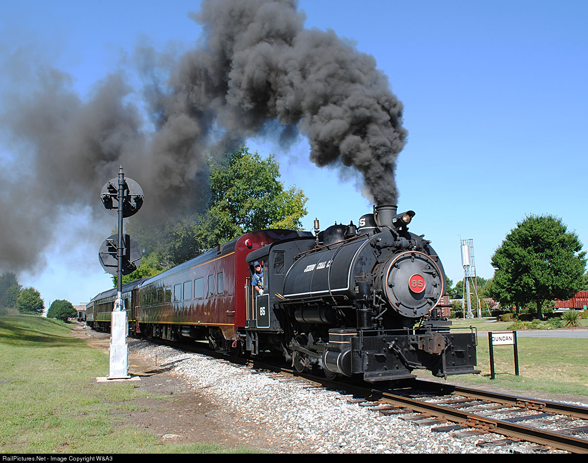 85 puts on a tremendous show departing with four passenger cars (including three heavyweights). The locomotive had to to take 2-3 cracks at the hill at the front of the property.
