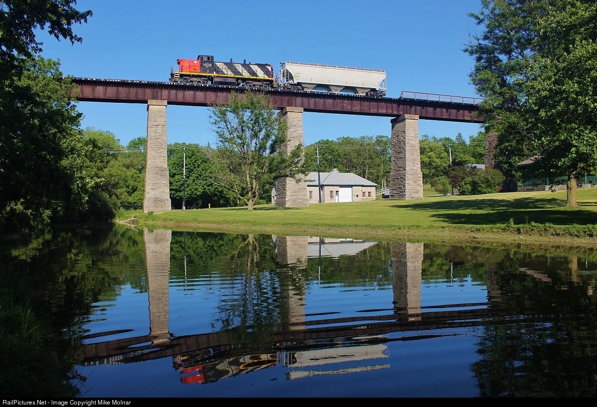 CN L568 crosses over Rotary Park and Trout Creek, a small tributary of the Thames River in St. Mary's. This would have been a perfect reflection, but some nearby ducks decided they wanted to go for a swim as the train approached. What can you do haha. Unfortunately, CN 1408 and other GMD1s are now retired and off CN's roster. Their fates are unknown at the moment.