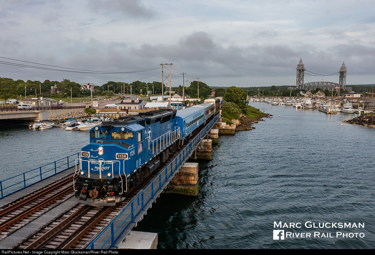 Summer Cape Commuting. On Sunday, June 27, 2021, MBTX 1136 (Mass Dot, GP40MC) leads First Class Club Car MBTX 225 (BTC-1C, Pullman, 1978-79) and 5 more coaches with a trailing locomotive across Cohasset Narrows in Buzzards Bay towards South Station in Boston, Massachusetts. New for this year's service is the introduction of a "First Class Club Car", which the CapeFLYER states "features large leather reclining seats with footrests and tray tables". The first class service is an additional $10 each way, added on to the $22 one way cost of a trip to Hyannis or $40 round trip. While there had been plans to add more than 1 round trip per day on its Friday/Saturday/Sunday/holiday schedule, the CapeFLYER reported that negotiations to lower the Cape Cod Canal Railroad Bridge more frequently were not successful.