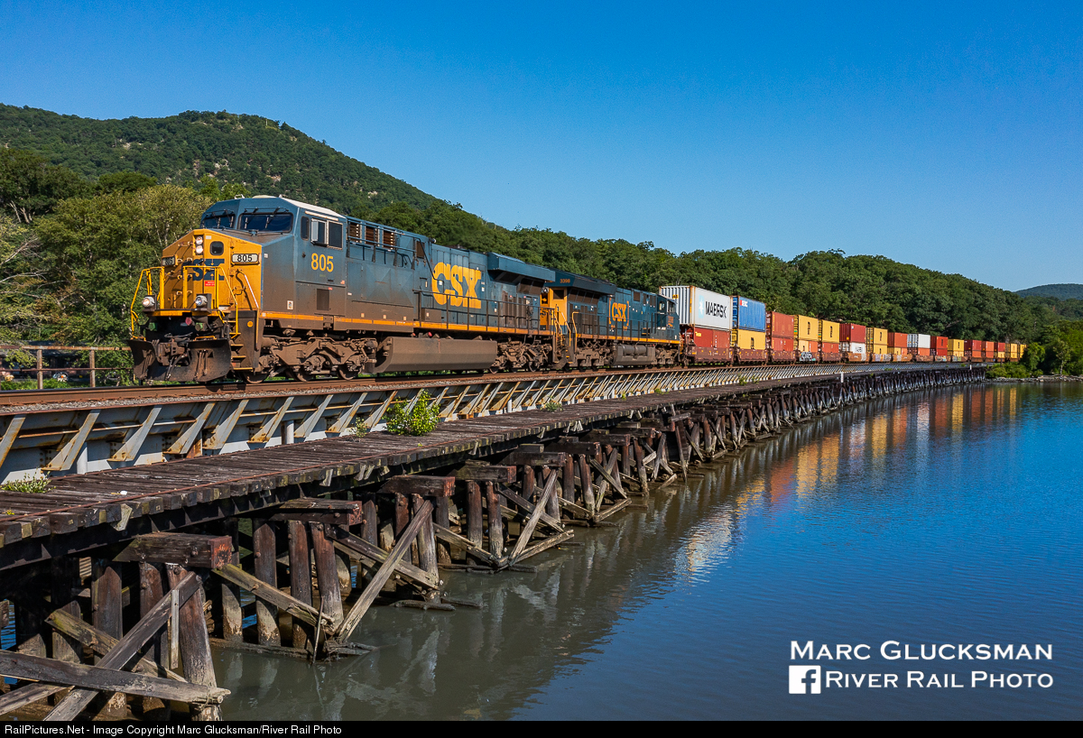 Priority Morning Train. CSXT 805 (ES44AC-H) leads CSX Q010 (Intermodal) over the trestle at Doodletown Bight from Bear Mountain to Iona Island, NY on Wednesday, June 30, 2021. With the high angle sun season in full effect, being out early in the summer is important for catching the best light for photography.