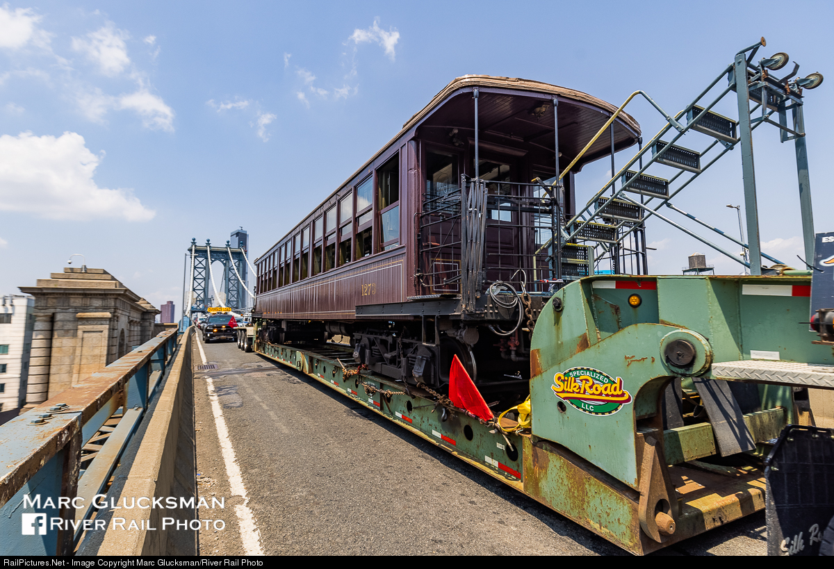 | Metropolitan Transportation Authority - MTA/New York Transit Museum BRT BU Elevated car 1273 (Laconia, 1903) was transported to the South Brooklyn Railway for return to the museum after the NYC Hometown Heroes Parade on July 7, 2021. This car has traveled on the Manhattan Bridge before, but is ususally a level lower on tracks! |