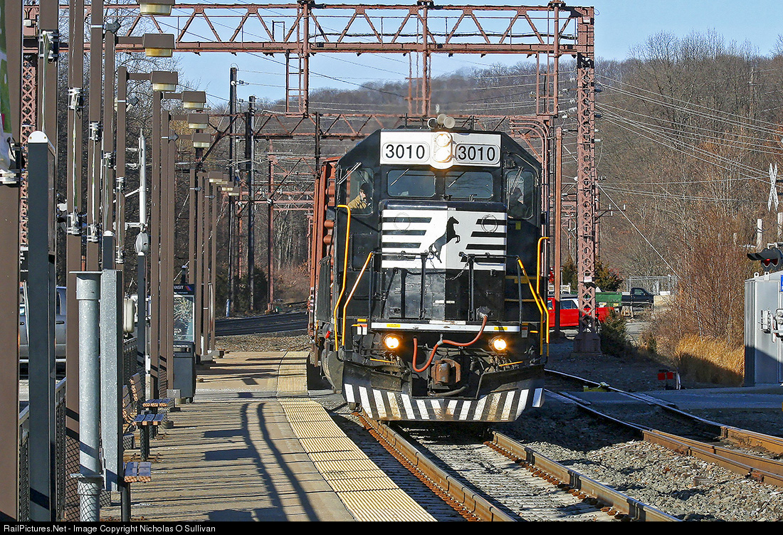 | The former version of NS H02 based out of Dover, NJ arrives at Denville, NJ. The train is headed east on the Montclair-Boonton Line for work on the Totowa Industrial Track. NS 3010 (ex-CR 3289) was sold to the Lake State Railway Company in June of 2020. |