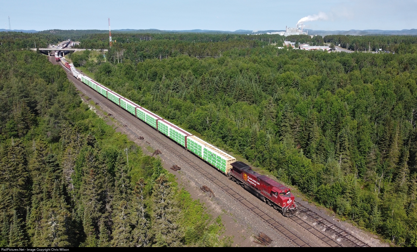 Forestry is big in Northern Ontario, and much of it provides a lot of business for Canadian Pacific with four large pulp/paper mills and several sawmills. CP's train from Winnipeg, MB - Toronto, ON handles most of that traffic seen here setting off/lifting out the yard for customer AV Terrace Bay, one of the largest in the game. The headend is lumber ex the Eacom sawmill in Ear Falls loaded out at Vermillion Bay. The Terrace Bay pulp mill is off in the distance.