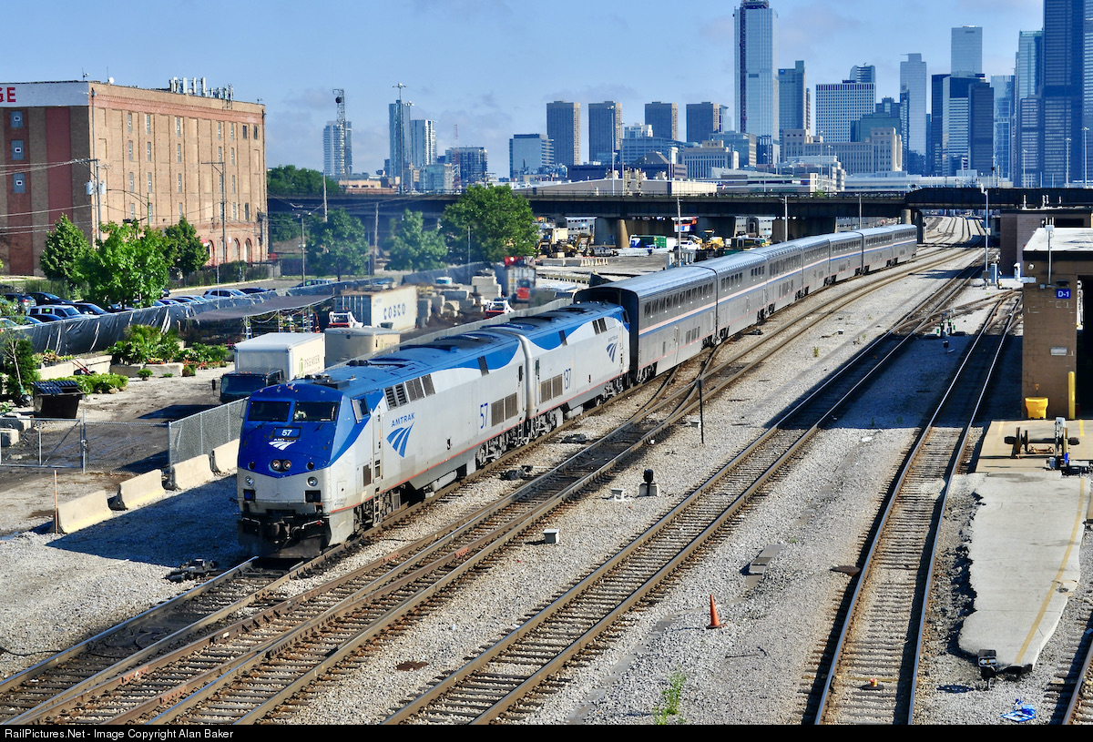 RailPictures.Net Photo: AMTK 57 Amtrak GE P42DC at Chicago, Illinois by Alan Baker