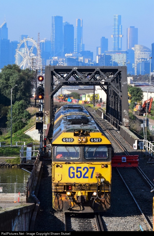 | Pacific National's G527 and G525 run light engine as 0531 from Dynon to Tottenham Yards to pick-up empty steel wagons are seen approaching the Bunbury Street Tunnel, Footscray...