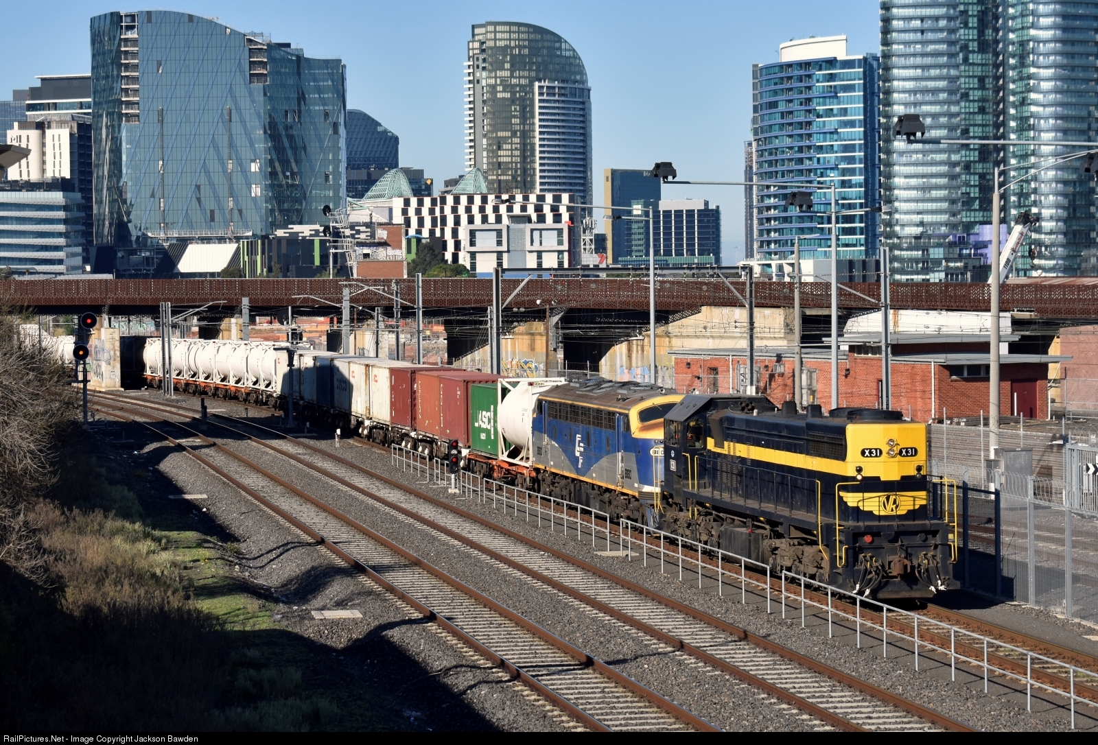 X31 Which is on lease to QUBE from SRHC and B80 crawl through North Melbourne with 9572 UP Dandenong Cement to North Dynon. Date: 28/6/2021
