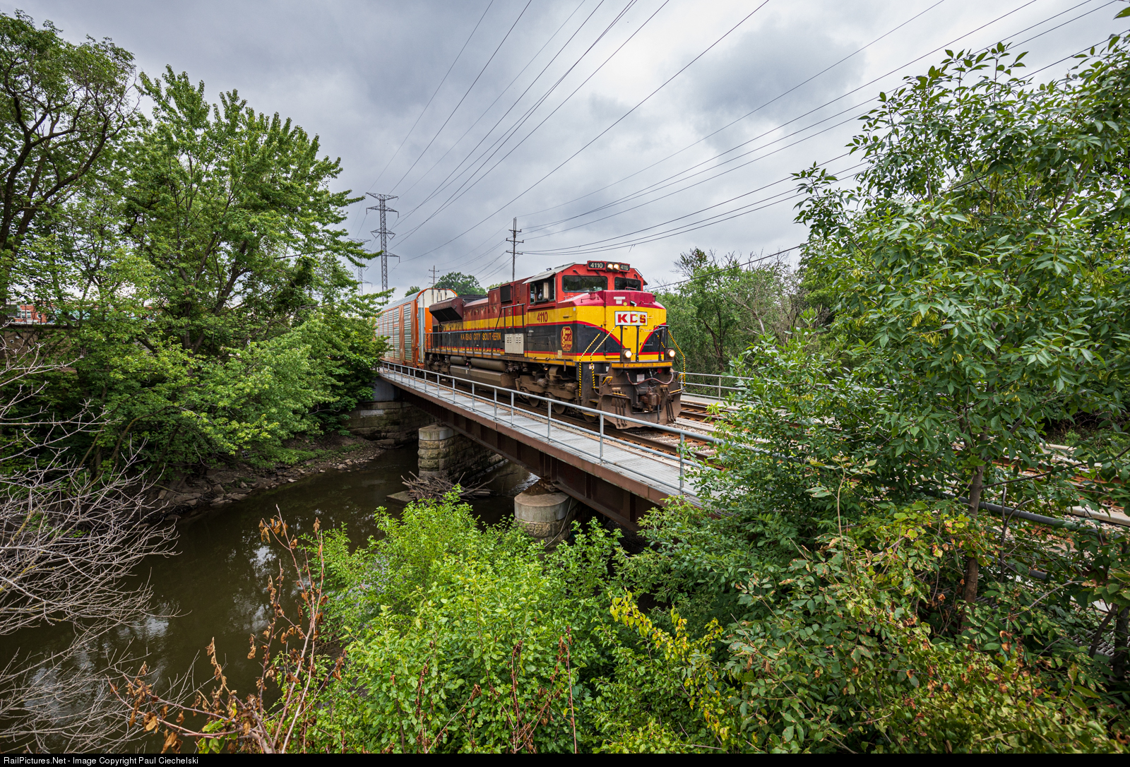 | KCS 4110 leads CP 281 past Morton Grove, over the North Branch of the Chicago River. This shot had always been on my bucket list, but I was never able to make it work up to this point. |