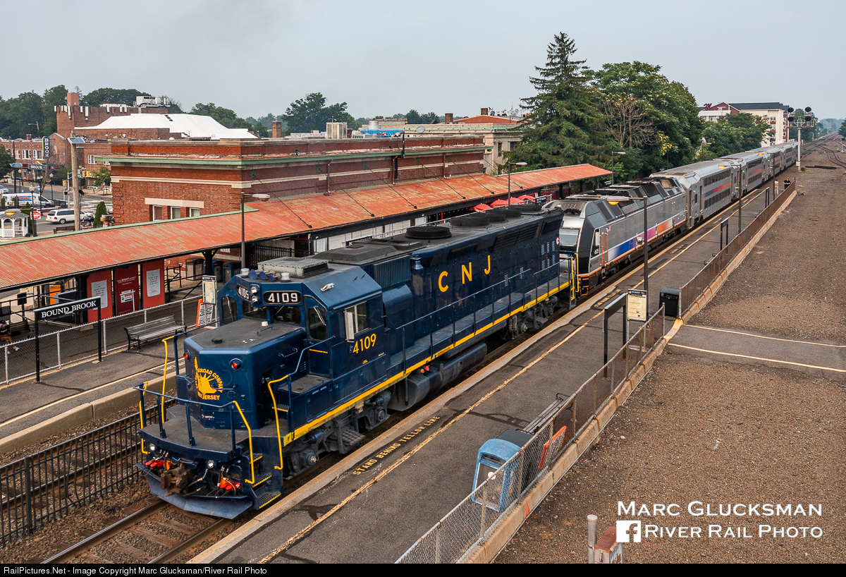 | Last Day On The CNJ. To mark the retirement of the last CNJ engineer on NJ TRANSIT's engineer roster (who will be making the westbound trip on train 5441) NJT 4109 (GP40PH-2) was added to train 5444 for the eastbound run to Newark Penn Station. The train is seen passing Bound Brook Station, a long time commuter station of the Central Railroad of New Jersey. |