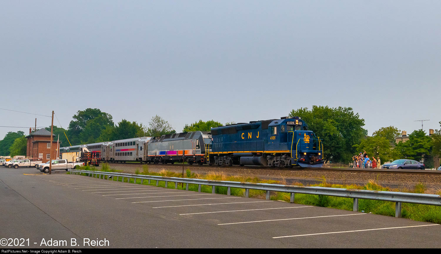 End of the (CNJ) Line: To honor Frank "Jethro" Strunk, the last former Central Railroad of New Jersey engineer serving with NJ Transit, the agency assigned its CNJ Heritage Unit (originally CNJ 3677) to his last runs on the Raritan Valley Line (the ex-CNJ Main Line). Railfans turned out in full force for his last run on Train 5441, particularly in the vicinity of Boyd Tower just east of the last stop at Raritan station.