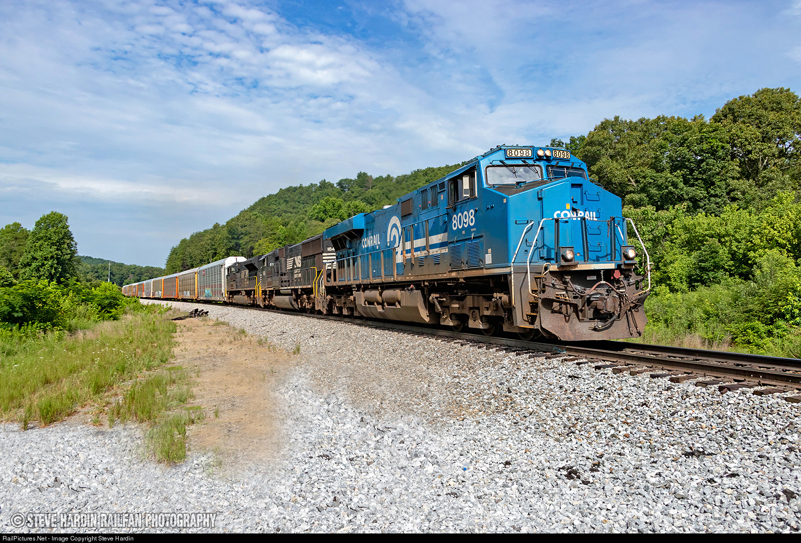 | The Conrail heritage engine leads the Jacksonville bound autorack/intermodal train, scene here grinding its way up Braswell Mountain. This was the 2nd week in a row where the 8098 lead NS 223 South. |