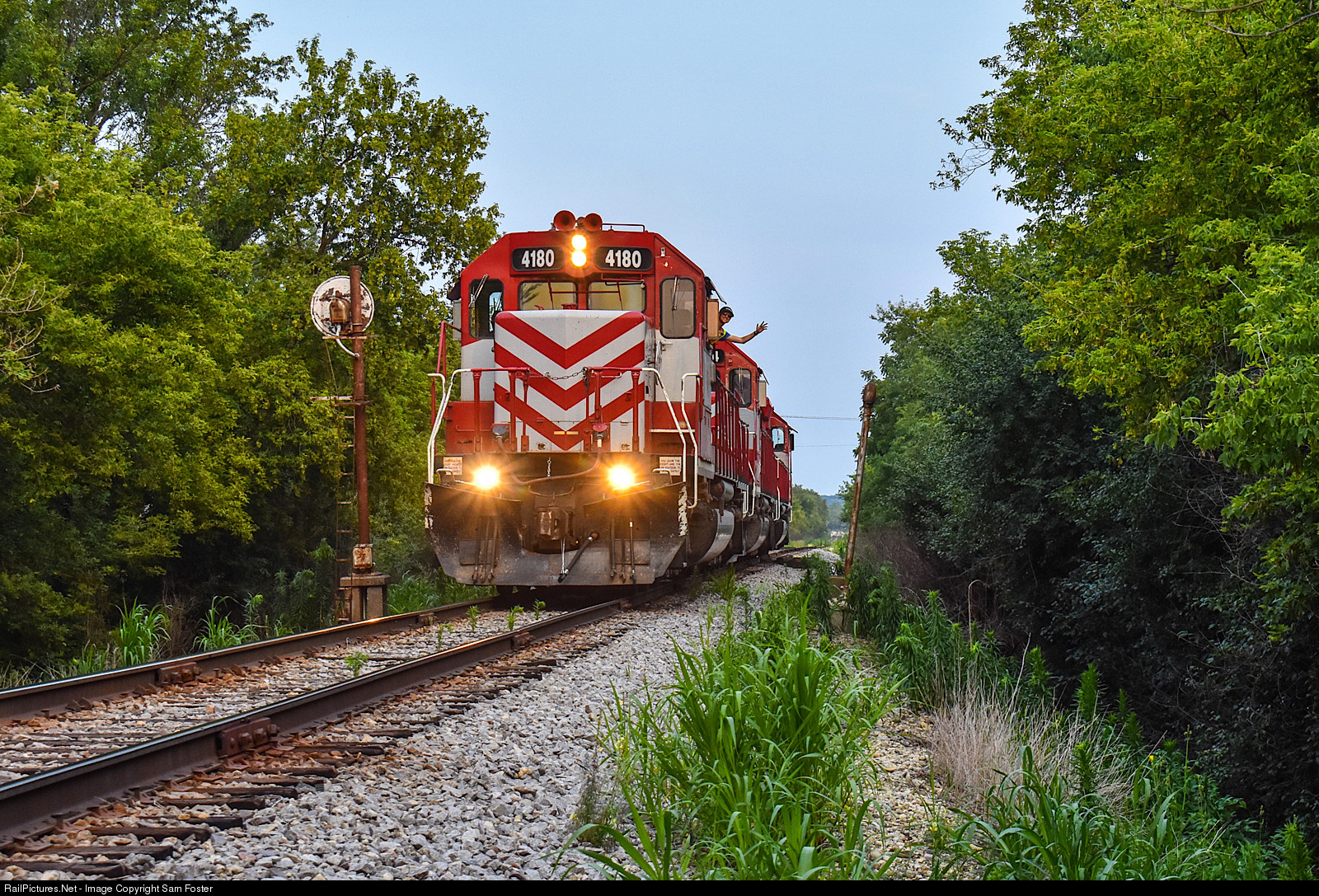 | After dropping off a few gondolas at Scot Forge in Spring Grove, WAMX 4180 heads back west through Richmond light power. A little further down the line, the trio of SD40-2s would recouple to their original train before tying down. |