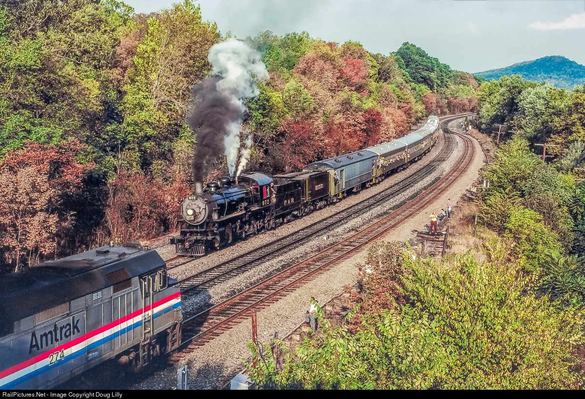 Two years after SEPTA discontinued passenger service to Reading, two passenger trains met at Birdsboro, Pennsylvania. The Philadelphia Chapter NRHS sponsored a Philadelphia=Perryville-Harrisburg-Reading-Philadelphia excursion using Amtrak equipment. When it joined the former Reading main line at Birdsboro, Pennsylvania, it met a Reading – Philadelphia excursion with CP 4-6-0 972 which had paused to wait a few minutes until the Amtrak special arrived.