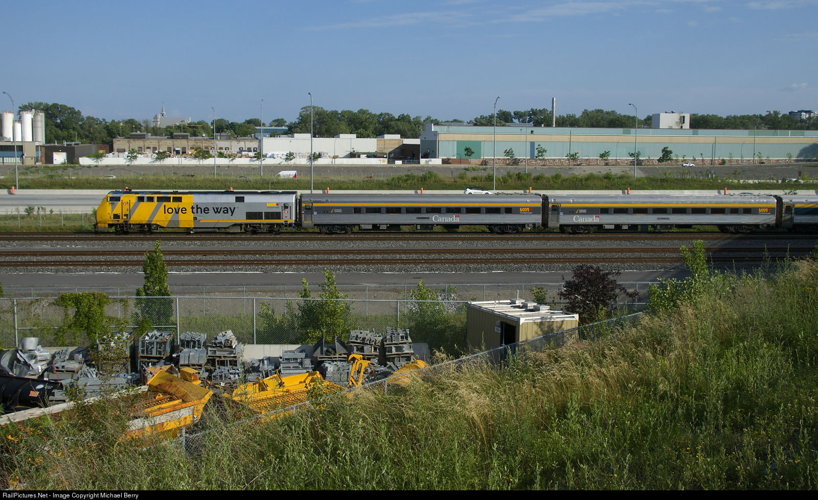 | Return of stainless steel cars to the corridor. VIA 28 has a pair of refurbished business class cars up front as it heads towards Central Station. VIA's stainless steel cars such as these had been completely absent from the Quebec City-Windsor corridor for over a year; with an increase in service frequency a few weeks back they have made a comeback. |