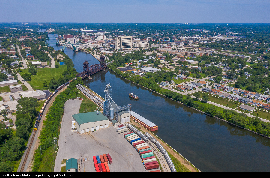 We're high above Joliet as an Iowa Interstate Blue Island, IL to Council Bluffs, IA road freight makes its way out of downtown. The train is seen crossing CSX Bridge 407 and the Des Plaines River. Prairie Creek, which is serviced weekly by the CSX, is in the foreground. Westbound Iowa Interstate movements are quite uncommon in Joliet during the afternoon, but for whatever reason, BICB didn't run during its usual time slot last night.