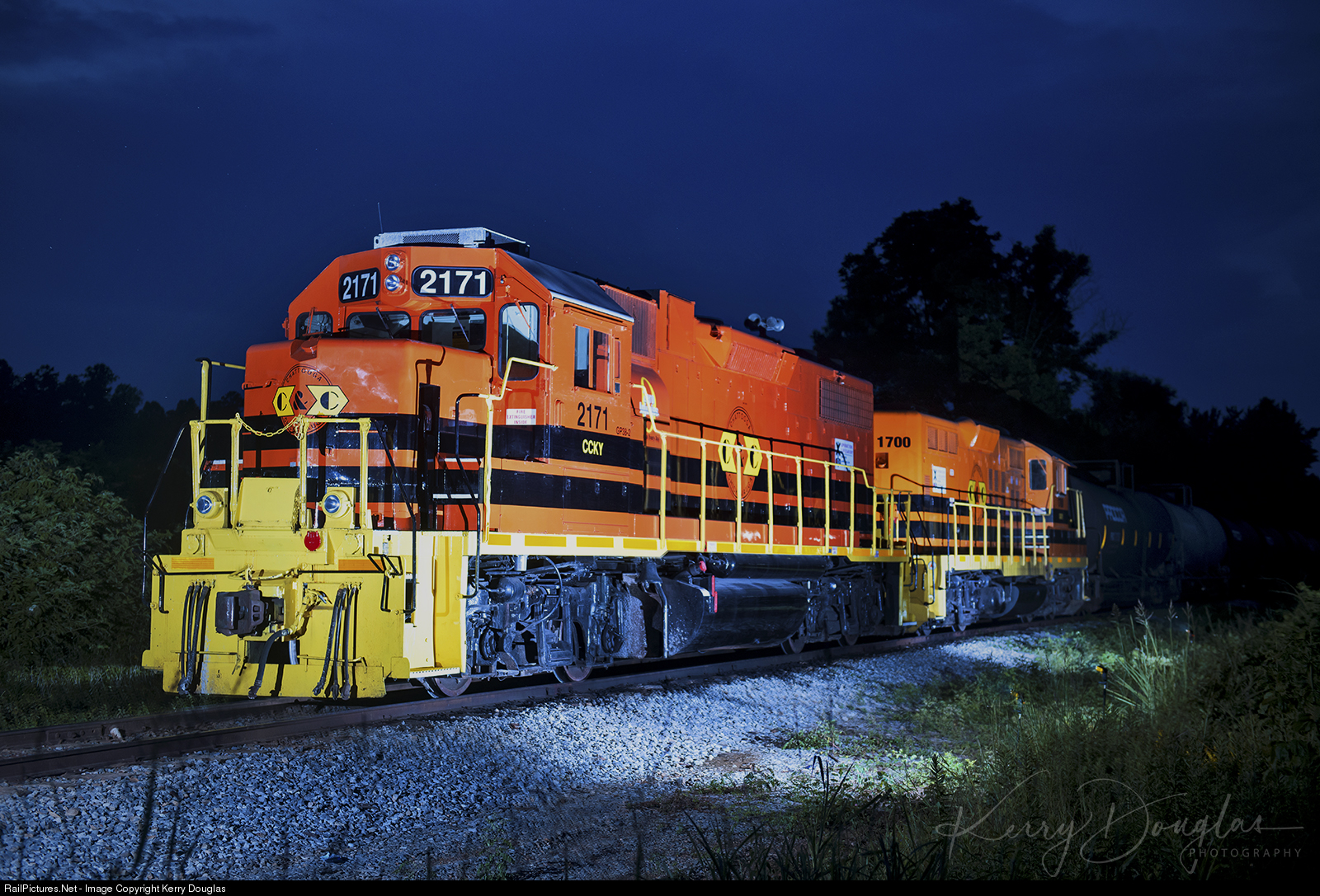 | This is the Orange and Black era of the Chattanooga & Chickamauga Railroad. CCKY Nº 702 is tied down for the weekend on the CofG CR&S route with a large block of cars going to Audia Plastic the following day. It’s a bittersweet moment especially for those who remember the ever-changing era of the CCKY. Although the CCKY fell under Genesee & Wyoming ownership in 2008, it had taken almost 14 years for the CCKY to turn into the full G&W Corporate Image. Thus, the CCKY Blue & Gray era is now part of history. |