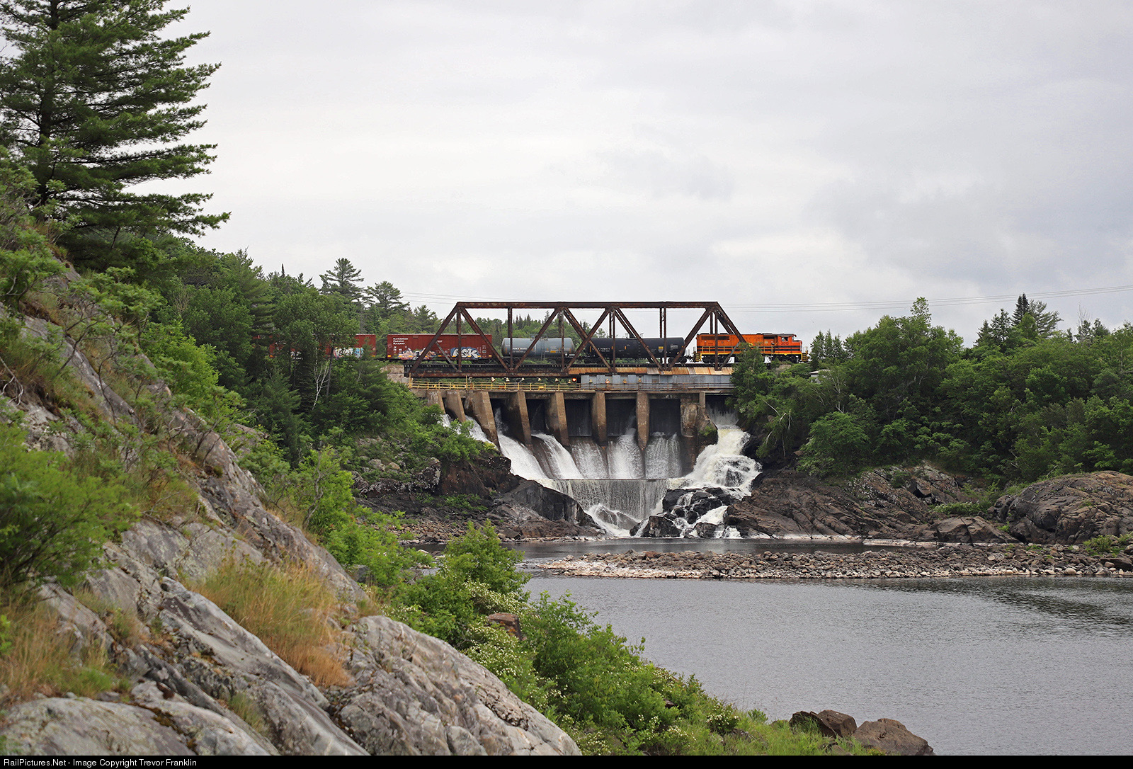 The daily local out of Mckerrow heads back over the Spanish River after completing its switching duties at Domtar in Espanola. The crew is usually on duty early in the morning making it pretty difficult to get anything but a back-lit shot here. The cars will be picked up by HCRY’s mainline train and taken to either the CP or OVR interchange points in Sudbury. 3012 was built back in 1976 as CN 9649.