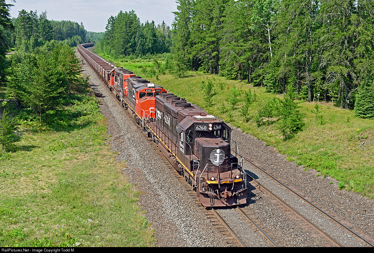 | IC 6260 leads some empty ore cars, used to deliver limestone to U.S. Steel Minntac in the summer months, back towards Proctor yard that's still a few hours away. The entire scene is effected by the Canadian wildfire smoke drifting across northern Minnesota. |