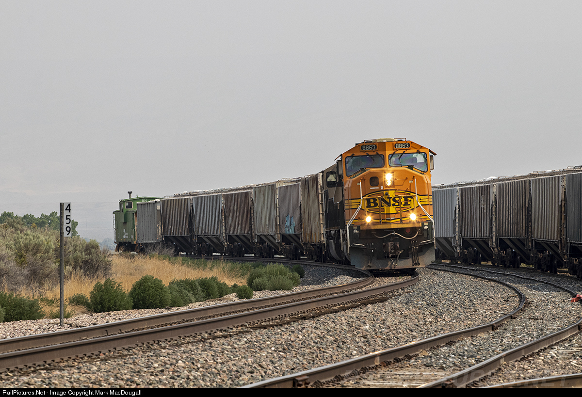 RailPictures.Net Photo: BNSF 8863 BNSF Railway EMD SD70MAC at Frannie, Wyoming by Mark MacDougall