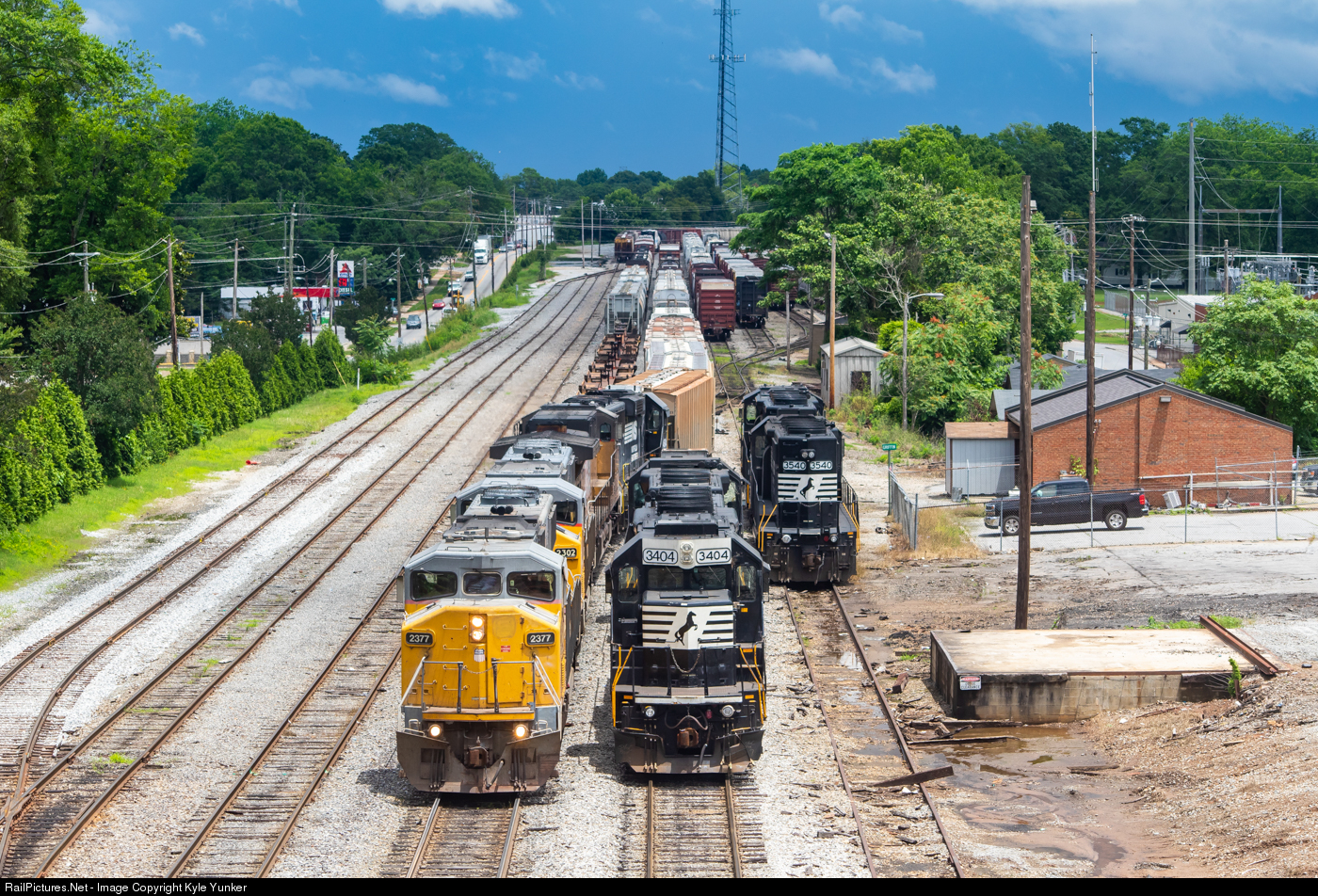 Norfolk Southern train #180 makes its pick up at Griffin with some aging western visitors for power