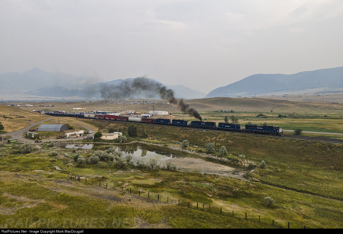 The 1759 Livingston Helper puts on a smoke show as they take the LAUBOZ over Bozeman Pass in the late evening.