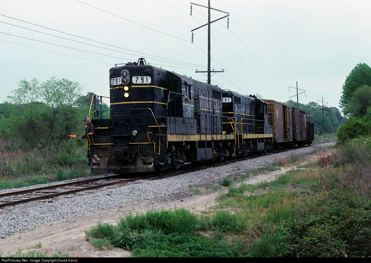 Back in the 1970s SCL still operated a branch from the ex-ACL main at John's Island to Croghan, a tiny yard with a couple customers directly across the Ashley River from downtown Charleston. It was worked by trains 584/585, which ran between Bennett Yard in North Charleston and Ehrhardt, which was the end of the Walterboro Sub at the time. 584 ran every day except Sunday, while 585 ran every day except Saturday. SB 585 generally worked the Croghan branch; MWF when I first started visiting in 1977, as needed by the time I left in 1980. In the photo, the keeps and cars are rocking back and forth as 585 slowly returns from Croghan with three cars. A crew member was required to flag all crossings. At John's Island the crew will add these cars to their train waiting in the siding beside the Charleston Sub mainline. Then they will head to Green Pond, where they will move to the Walterboro Sub. The branch was abandoned - I believe - in 1980 or 1981.