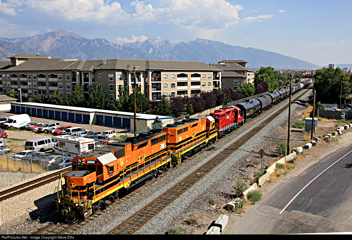 | So I heard from some other railfans that there was a red GP10 in Utah Railway's Midvale yard this morning. Well as I was getting off work today the Utah Railway RUT312 was just hitting the crossing with the red engine in tow. So I hurried to a spot so I could get a shot. It's FTRL 8201. I learned from the scanner that the Utah was taking it over to Salt Lake Garfield & Western's yard. So I'm assuming that they are going to be using it. |