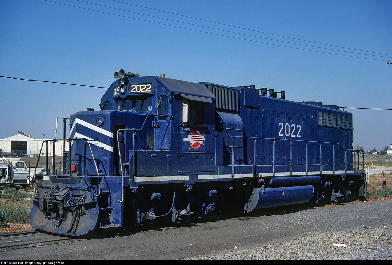 Following the December 1982 merger of the Missouri Pacific and Western Pacific into the Union Pacific in 1982, MoPac’s large fleet of 281 GP38-2s was flung over the entire UP system. On August 21, 1985, Missouri Pacific GP38-2 2022 (ex-MP 871) was found in Ontario, California, still in MP Jenks Blue. In fact, from what I can tell, this engine was never renumbered or repainted into the UP system before being sold to Helm Leasing before the end of the Eighties.