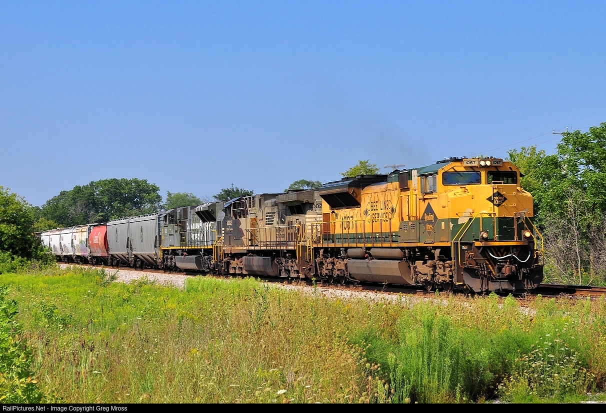 Reading heritage unit 1067 leads CP 384 through Franksville, WI. on CP's C&M Sub on August 20, 2021. Heritage units NS 4002 and CP 6644 trail, making for quite a lash-up. 1067 left the Twin Cities solo in the lead and 6644 as DPU. They picked up 4002 en-route and re-arranged the engines in Milwaukee to allow this lucky shot of all 3 units on point.