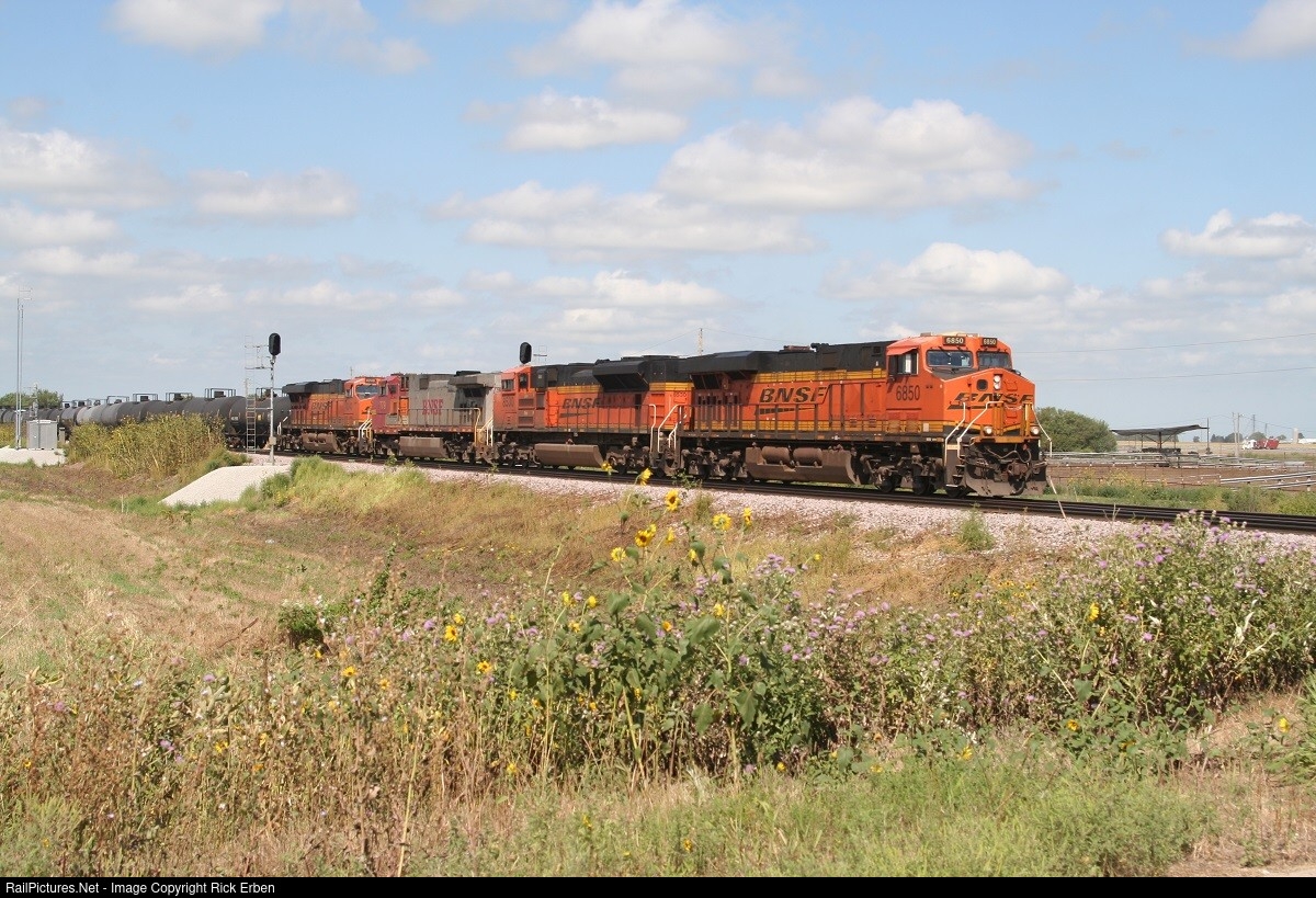 In the heat of an August afternoon, BNSF 6850 leads an eastbound manifest into the siding at Dorchester, NE - about 25 miles west of Lincoln on the former CB&Q Denver mainline. This time of year the black-eyed susans and thistle thrive by the roadside in profusion, and clouds lazily drift above the flatlands.