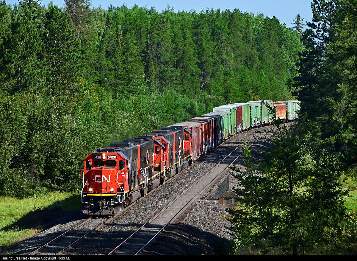 | If a pair of SD60's look good then two pairs look even better as CN's L568 job from Ranier, MN down to Proctor, MN make their way along CN's Missabe sub for a stop at Keenan yard for a setout and pickup before continuing on. |
