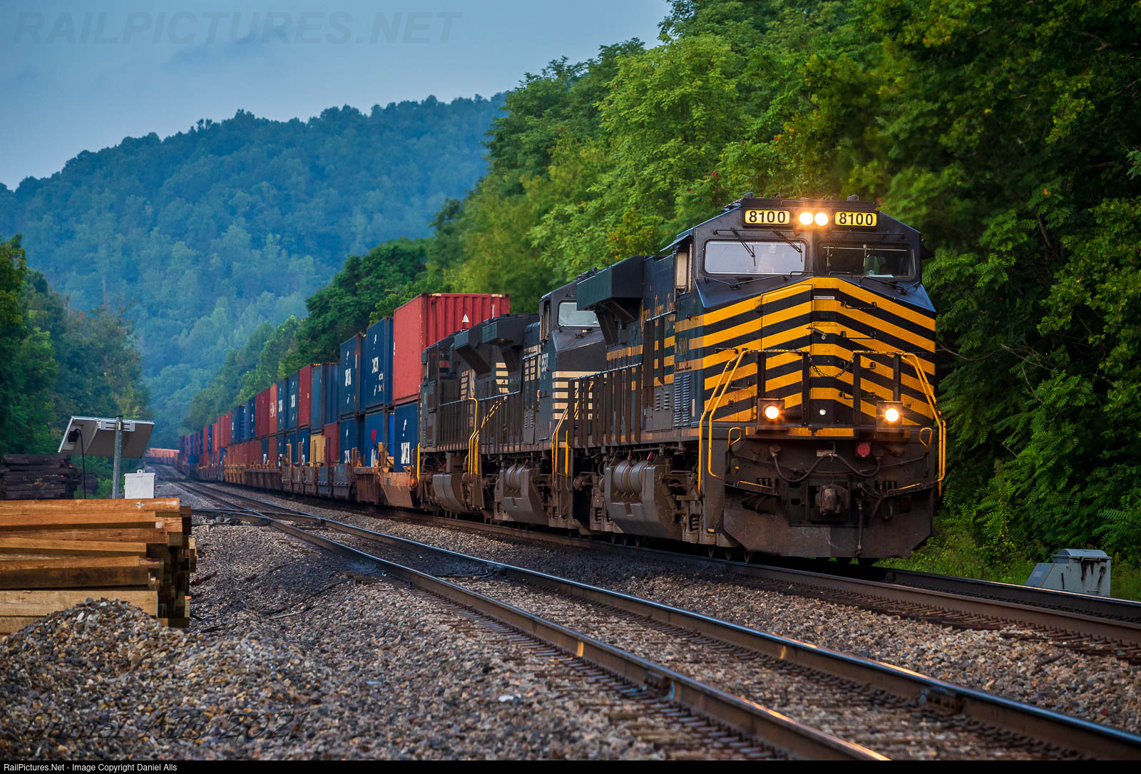 Before the sun has come up over the mountains in Elliston, Va, a late hot shot intermodal NS 218 rumbles east. The Nickel Plate Road heritage unit is in charge today.