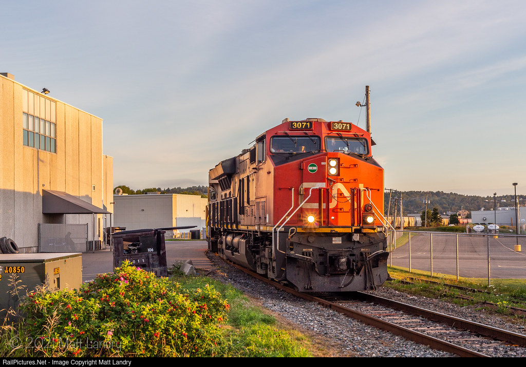 CN 3071 leads potash train 594 as they head over to Courtnay Bay in Saint John's south end shortly after sunrise.