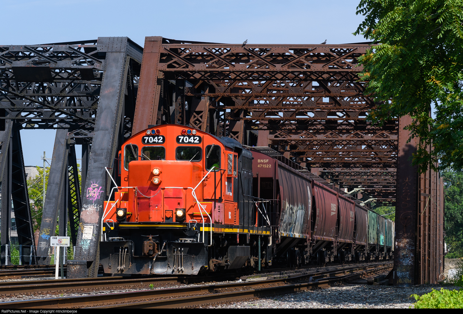 | One of the Camp Chase Railroad's ex. CN GP9RM's leads local train CAMY-01 as it crosses the Scioto River after passing through LM Cabin in Columbus, Ohio and makes its way towards the interchange point with Norfolk Southern. |