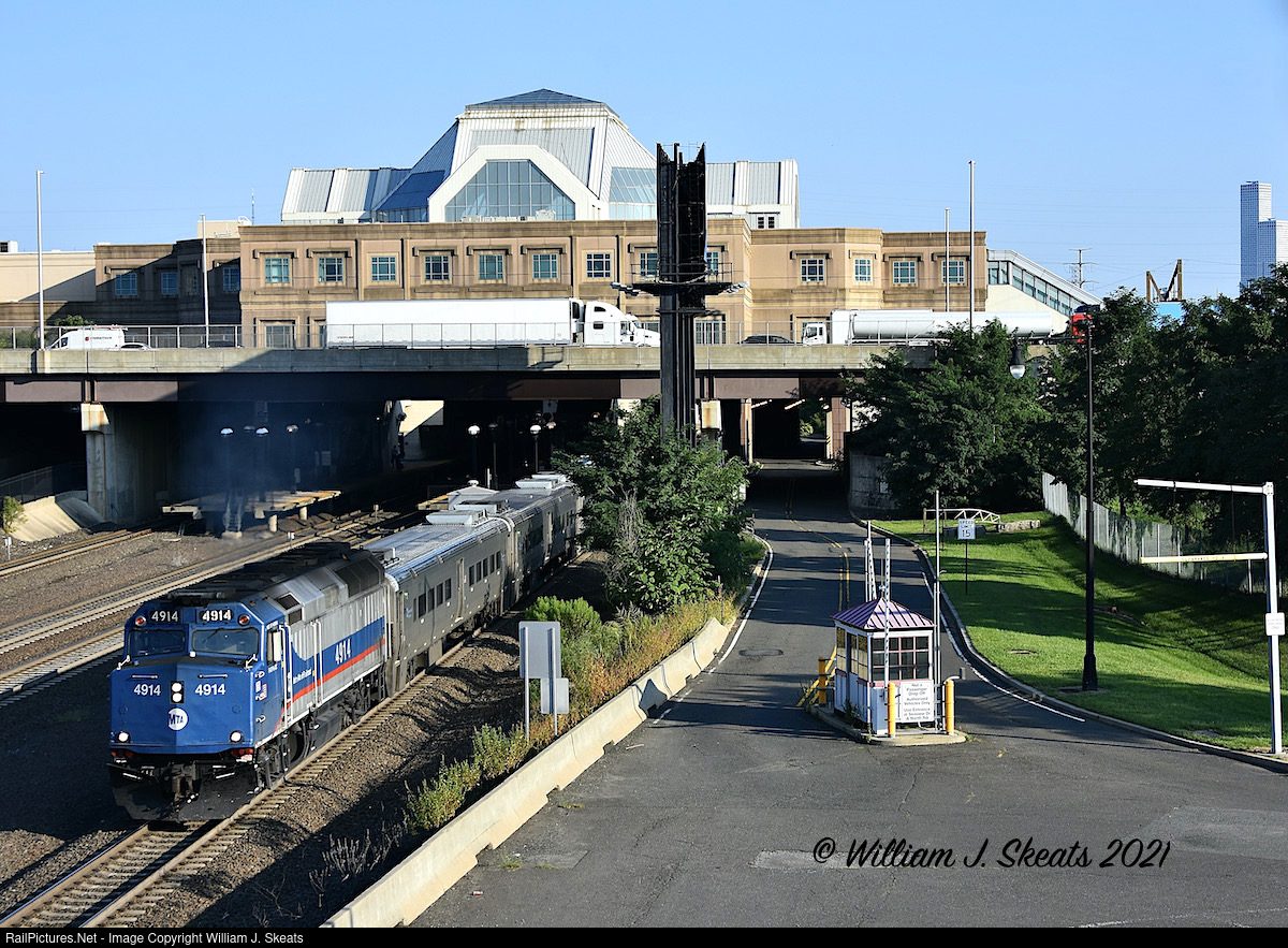 | West of Hudson Train 57 to Port Jervis is leaving from the Frank R. Lautenberg Rail Station from the lower level. Metro North F40PH-3C 4914 will travel the Main Line before joining the Bergen County Line at Ridgewood Junction on its way to Port Jervis. |