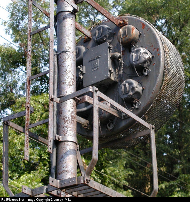 Close up of the rear of an aging B&O CPL signal.