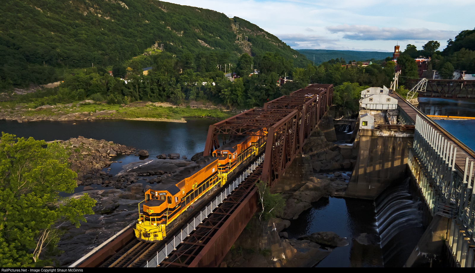 | Taking advantage of the long days in June and suspended Amtrak service, I was able to get New England Central train 323 crossing the Connecticut River, as it makes it's way north to Saint Albans. |