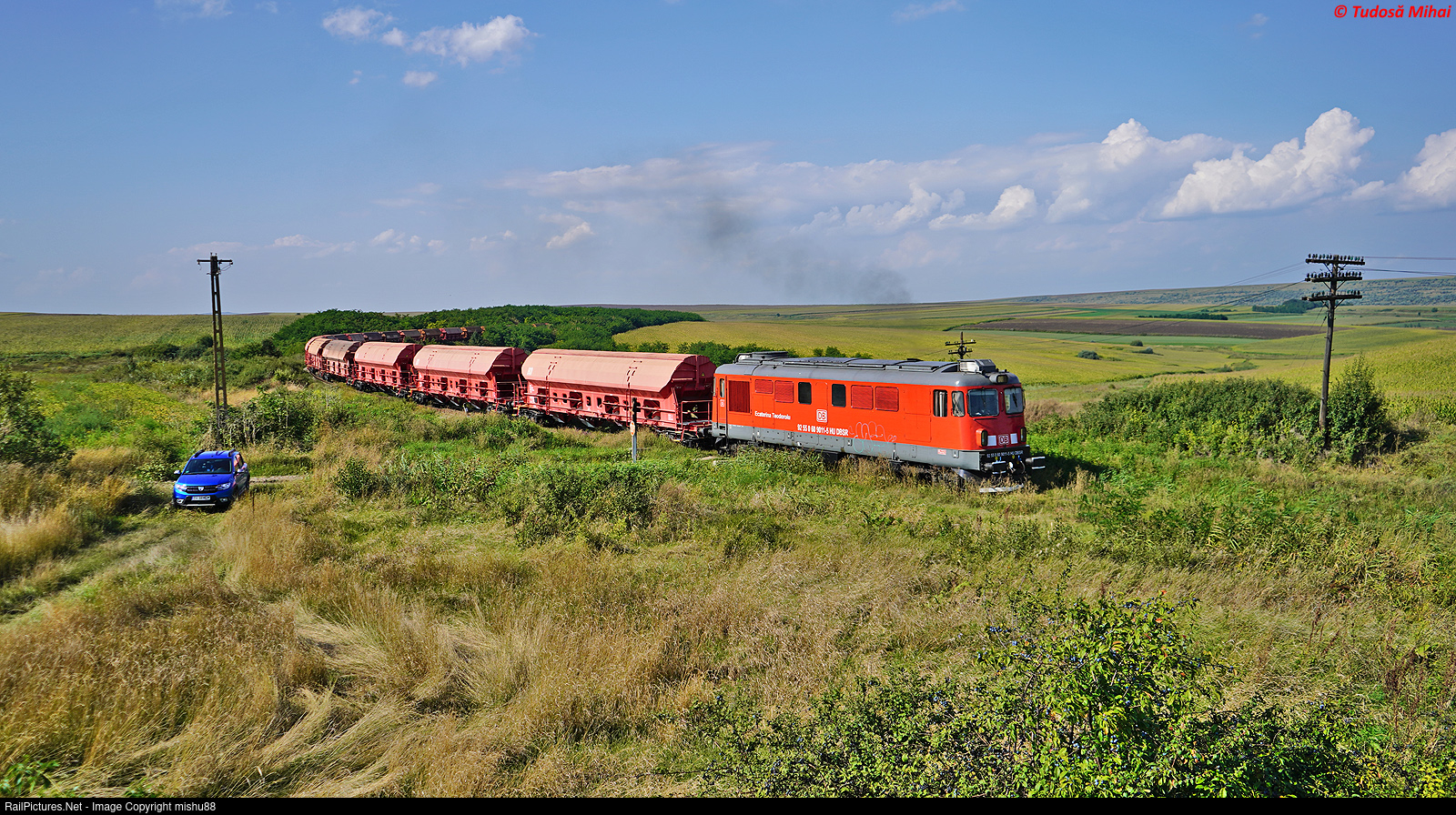 DB Cargo Romania freight train hauled by DA 60-9011-5 from HU DBSR between Leorda and Botosani with 30 Tadgs cereal cars.