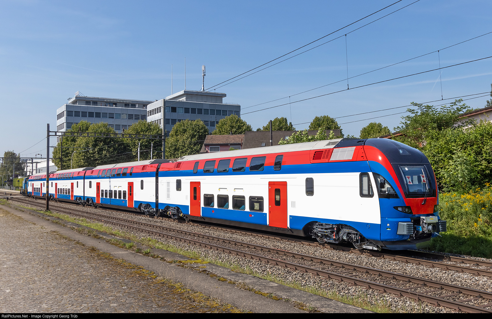 | Brand new first doubledeck KISS train for Serbia. In january 2021, the Serbian Ministry of Construction, Transport and Infrastructure called for tenders for three 200km/h EMUs for use on the Beograd – Novi Sad – Subotica route for delivery by October 2021. In april 2021 the contract for three of these doubledeck trains from StadlerRail for a maximum speed of 200 km/h and 25000 V 50 Hz AC were signed for the newly built line from Beograd to Novi Sad (-Subotica). Now, after about half a year only, Stadler has the first train (410 # 001) ready for commissioning in the Erlen center! |