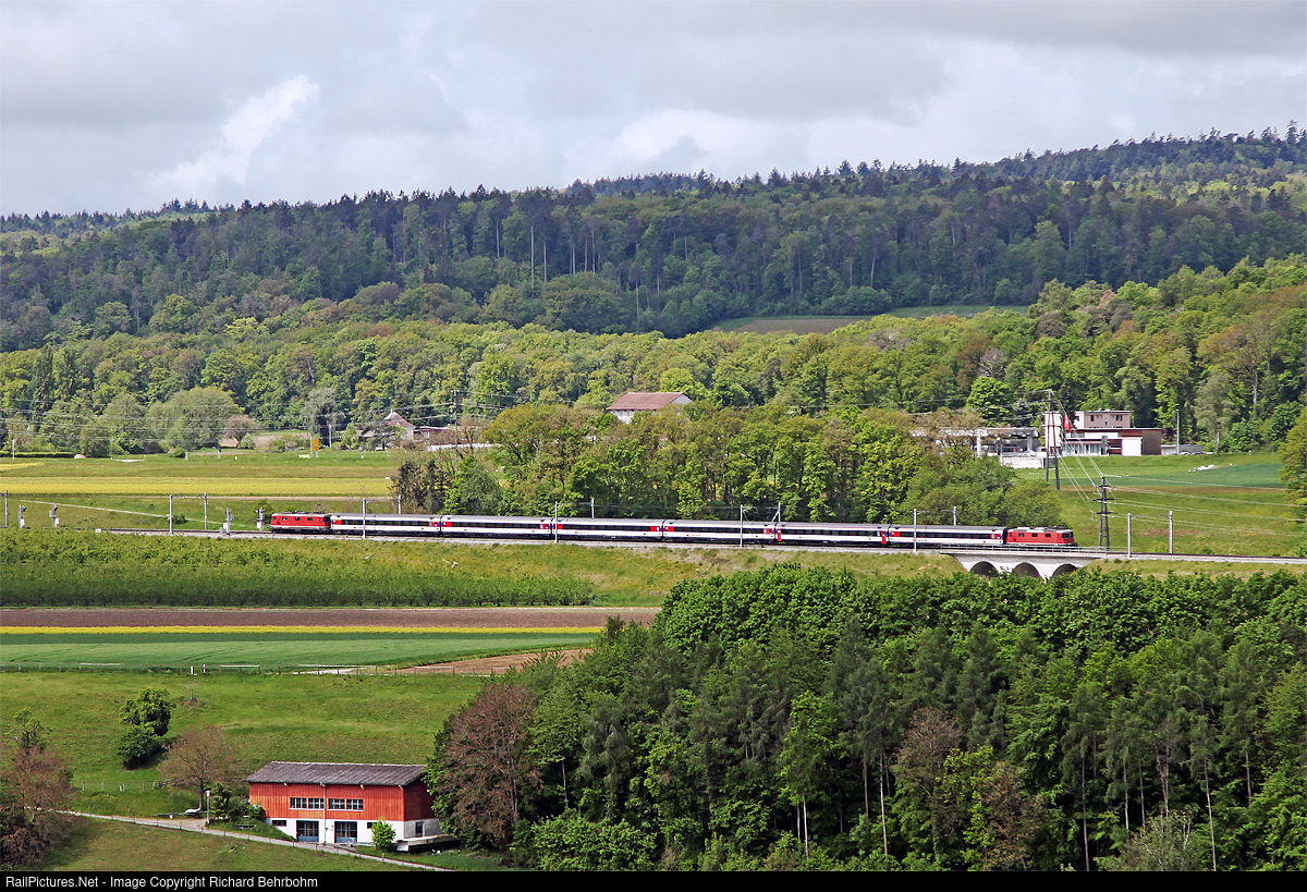 | Re 420 141 is pulling Intercity 483 Singen - Zurich, at the rear end of the train is the broken locomotive Re 420 144. |