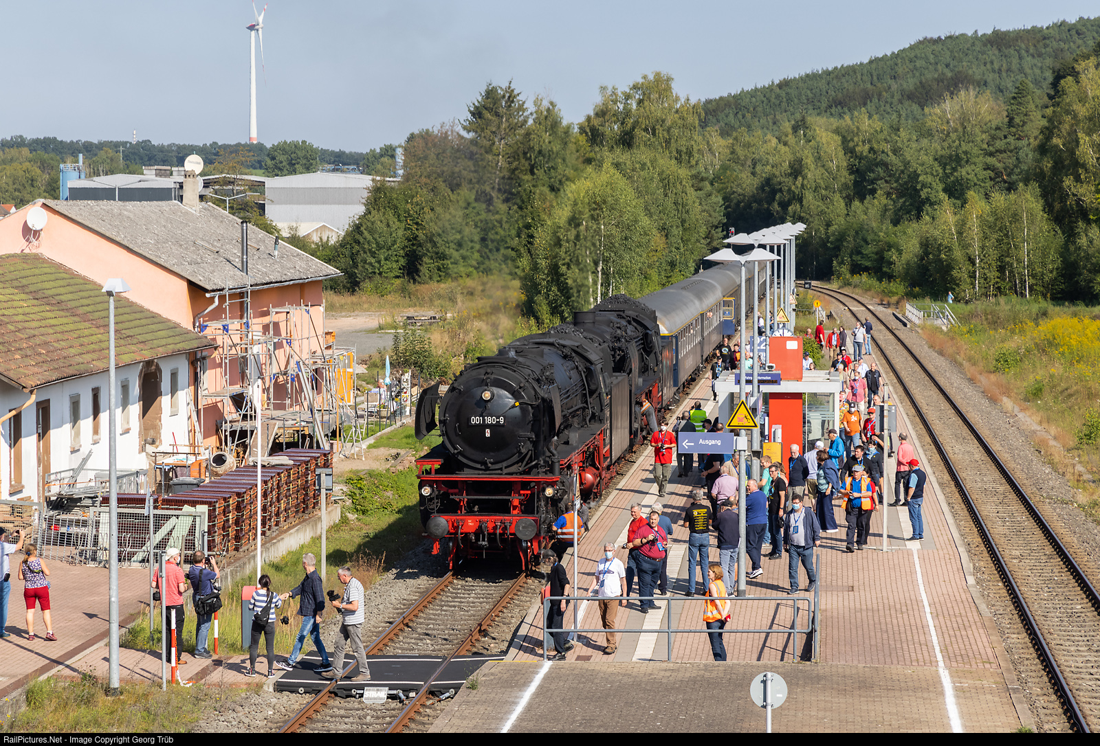 Photo stop of the steamtrain "Dampflok-Spätsommer in Deutschland" of the IGE/Eisenbahn-Romantik Reisen in Enkenbach on the Alsenztal line between Bad Münster am Stein and Hochspeyer Nord. 4-6-2 steamlocomotives 01 # 180 and 01 # 066 of the Bayerisches Eisenbahnmuseum Nördlingen (BEM) are pulling the train, which ran from Koblenz via Bingen-Neustadt an der Weinstrasse-Mannheim-Heidelberg to Stuttgart this day.