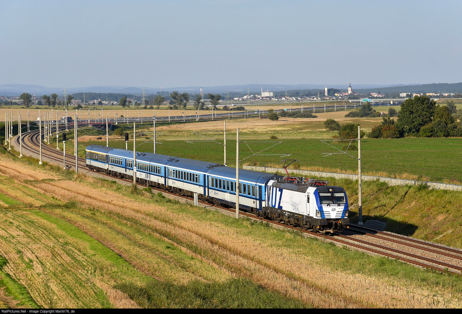 The Vectron 193.902 electric locomotive hauling a passenger train IC 539 "Jižní expres" from Praha-Holešovice to ?eské Bud?jovice.