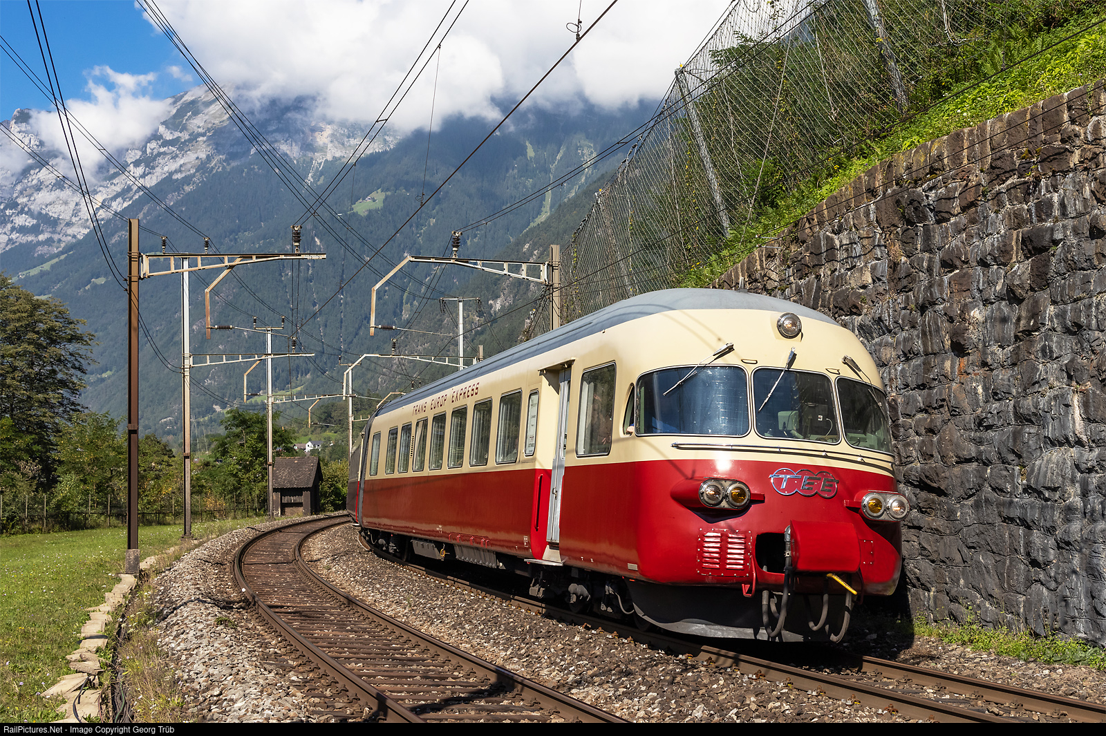 | On the occasion of the "Gotthard-Bahntage" the timeless elegant TRANS EUROP EXPRESS RAe TEE II # 1053 (built in 1961) of SBB Historic is running train 31153 from Erstfeld to Göschenen, on the Gotthard north ramp between Amsteg-Silenen and Gurtnellen. |