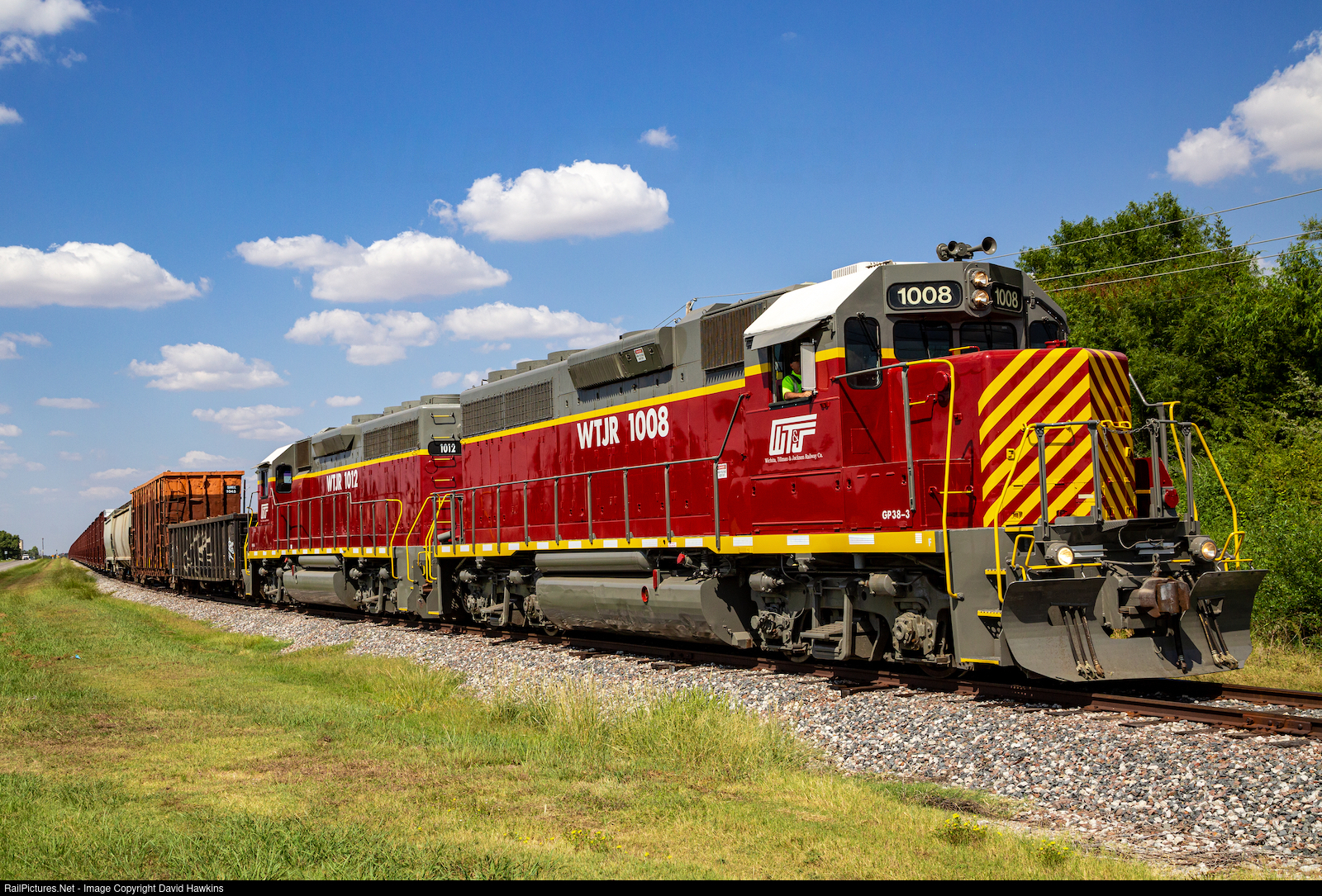 RailPictures.Net Photo: WTJR 1008 Wichita, Tillman & Jackson Railway EMD GP38-3 at Burkburnett, Texas by David Hawkins
