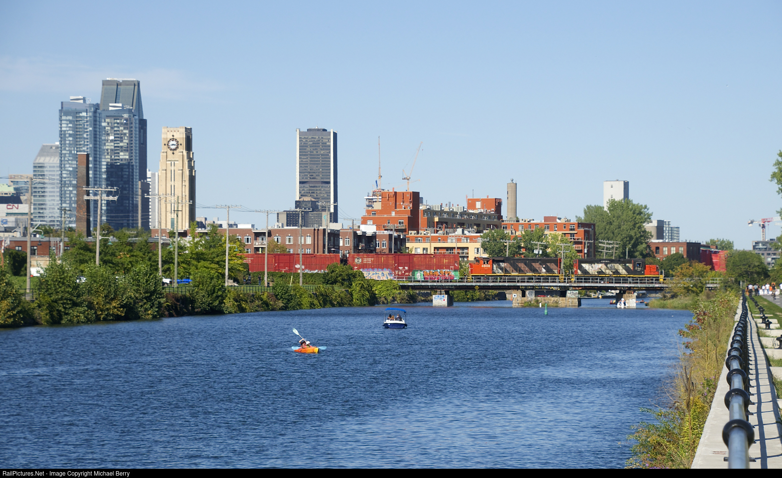 CN 596 is heading back to Pointe St-Charles Yard after picking up some cars on Track 29 as they cross the Lachine Canal with CN 4141 & CN 4808.
