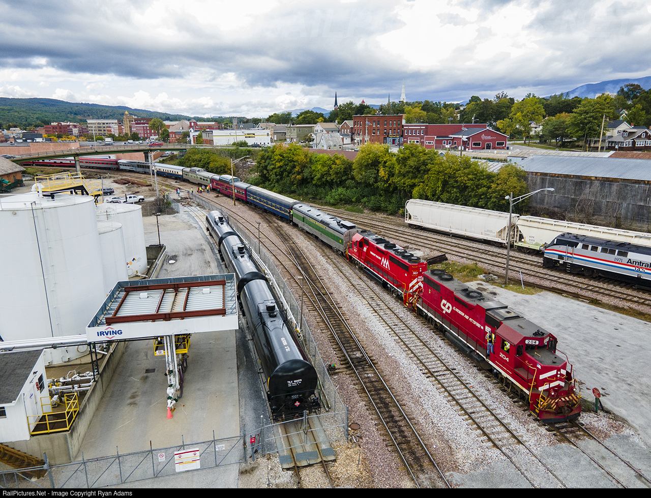 With the Amtrak powered swapped off the AAPRCO special, the Vermont Rail System will take over commands of the train before they head for North Bennington, VT. Meanwhile, Amtrak 145 & 100 will lead four additional Private Cars back to Albany, NY for the RailExeco charter.