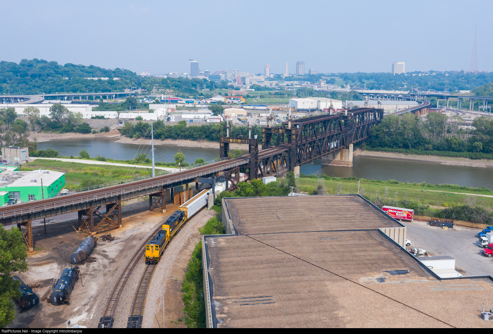 A Kaw River Railroad local crosses over the Kansas River in Kansas City, Kansas after rolling through Santa Fe Junction and heads towards the railroad's Mill Street Yard. The Kaw River Railroad is the Watco owned shortline operator over the Kansas City Terminal Railway.
