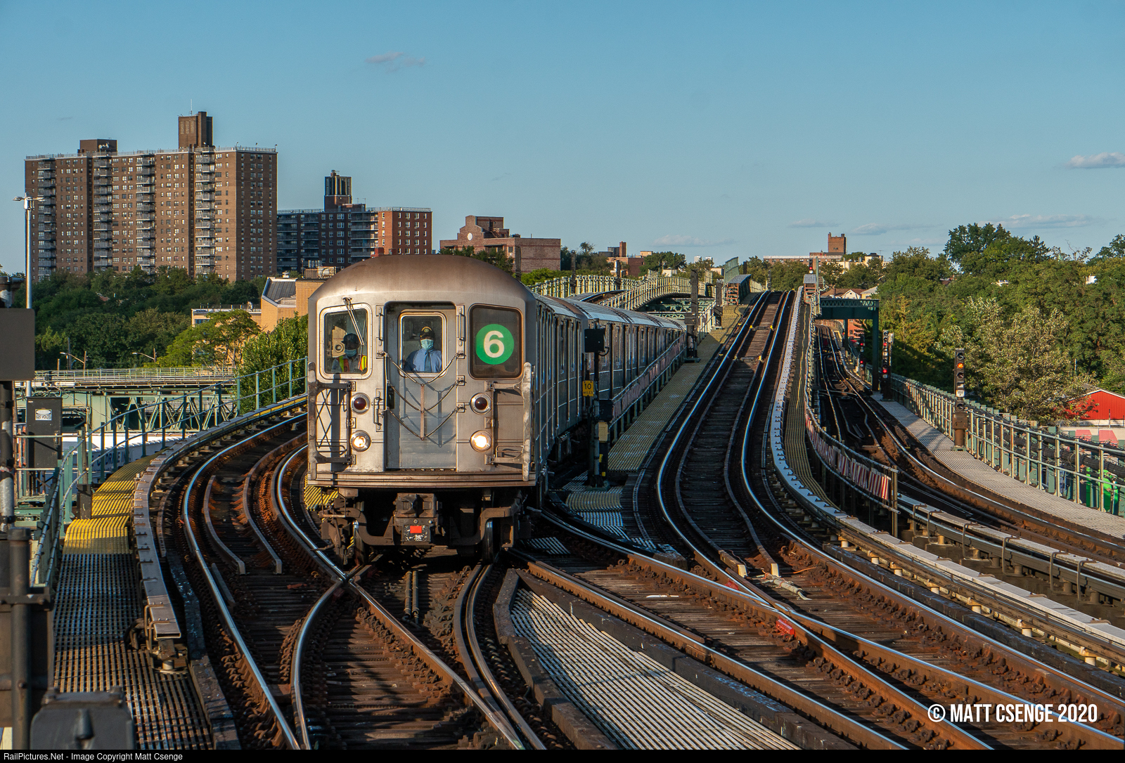 Out of the Yard. A Manhattan-bound 6 train emerges from the Westchester Yard lead to make its first stop at Westchester Sq Station. This was taken during a weekend GO where all service past Westchester Sq. was suspended. Trains were using the leads to Westchester Yard to turn to head back to Manhattan.