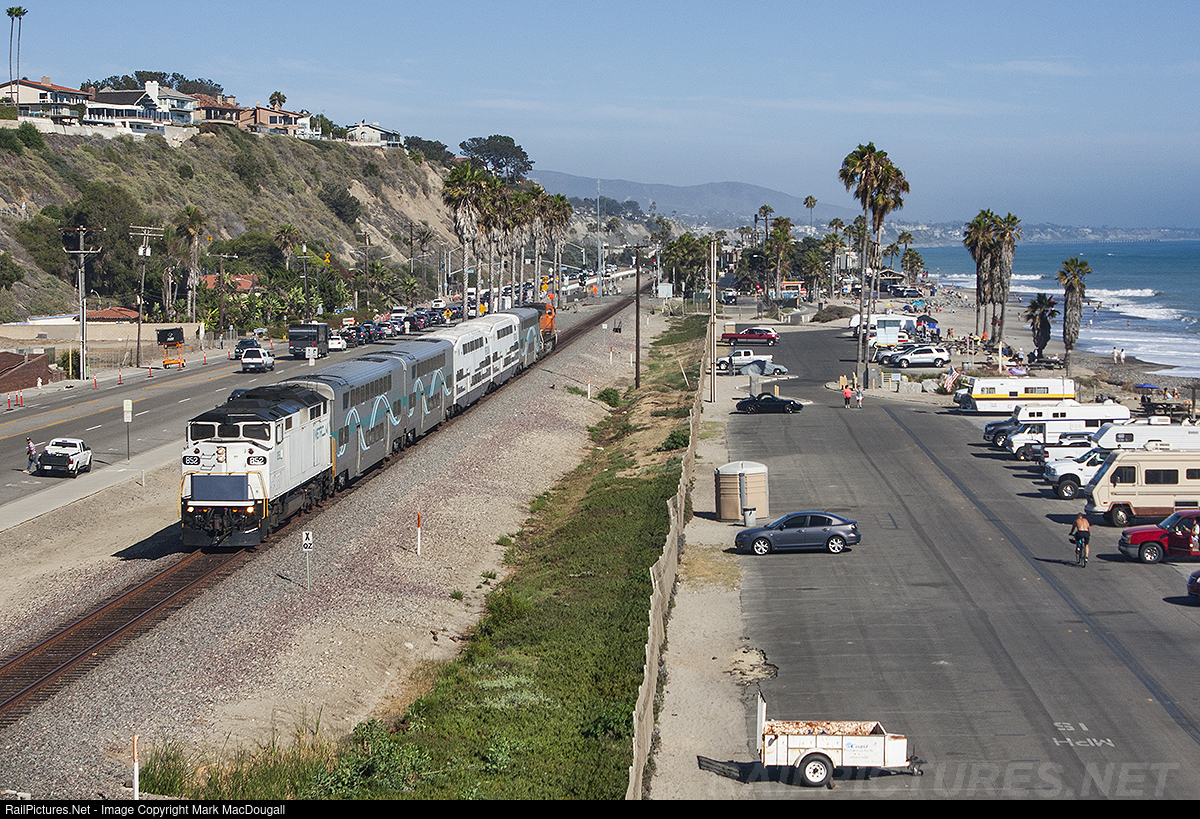 Metrolink 812 passes Doheny State Beach in Dana Point.